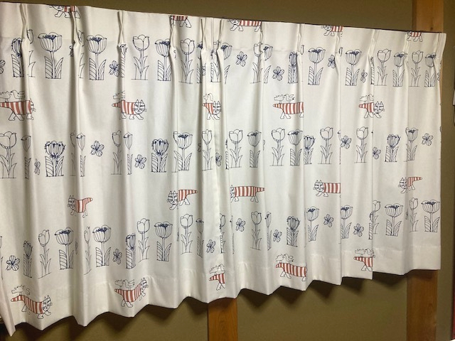 LISA LARONの人気キャラクター猫の「マイキー」をモチーフにした「マイキーフラワー」シリーズ。マイキーが花畑を小鳥とお散歩している可愛らしいデザイン。綿100%の優しい肌触りの厚地カーテンを取り付けました。(ウォッシャブル)