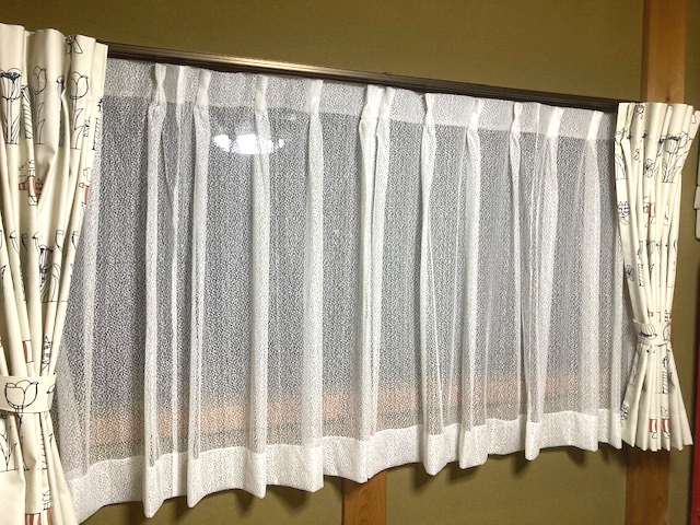 レースは、シンプルで様々なインテリアに合う高機能レースカーテンを取り付けました。(防炎・ウォッシャブル・遮熱・ミラー)